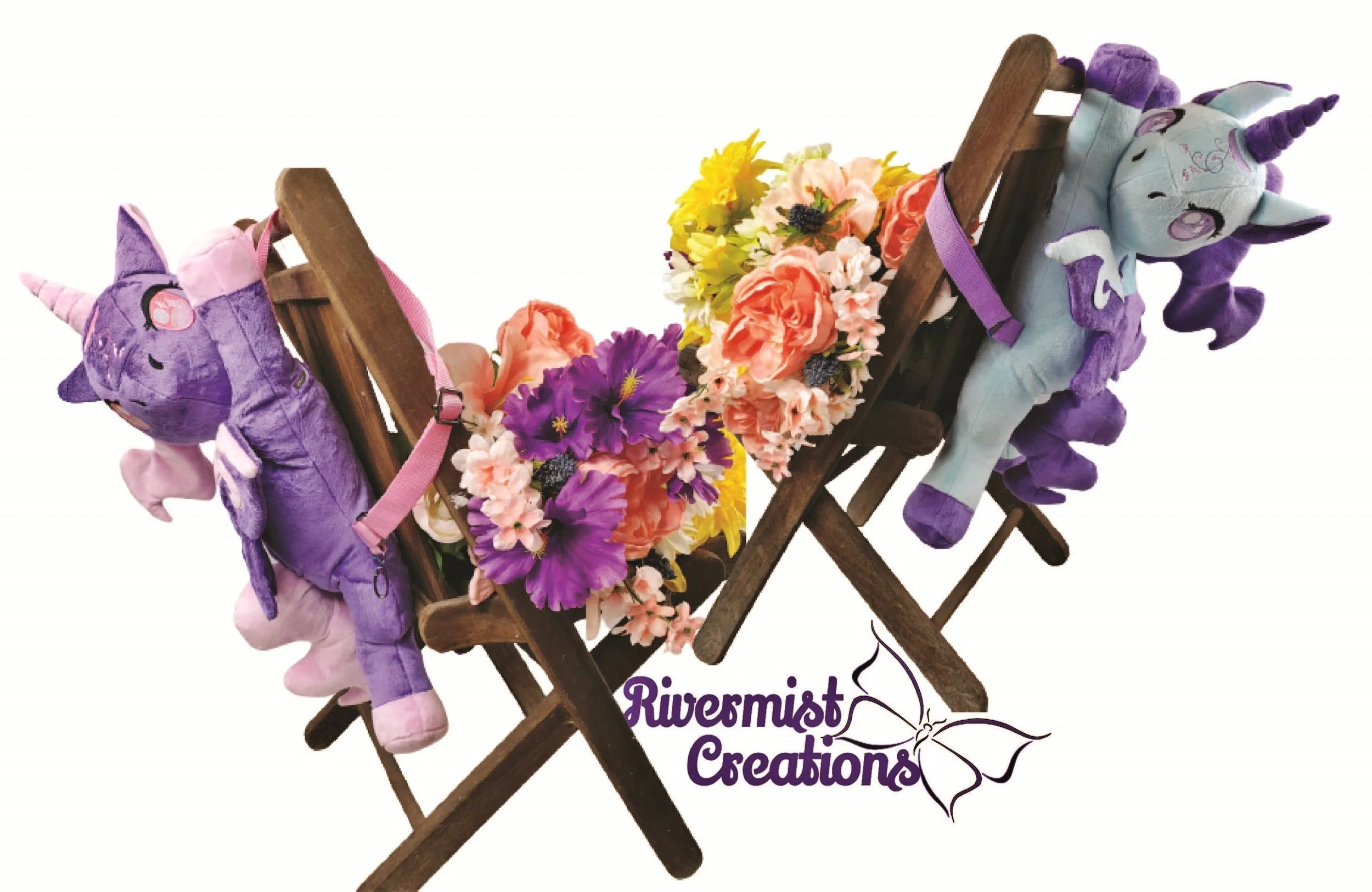 These soft unicorn backpacks are constructed of silky smooth minky fabric in your choice of colors. You also get to chose eye style and color, mane and tail style, wing style, straps and forehead style.